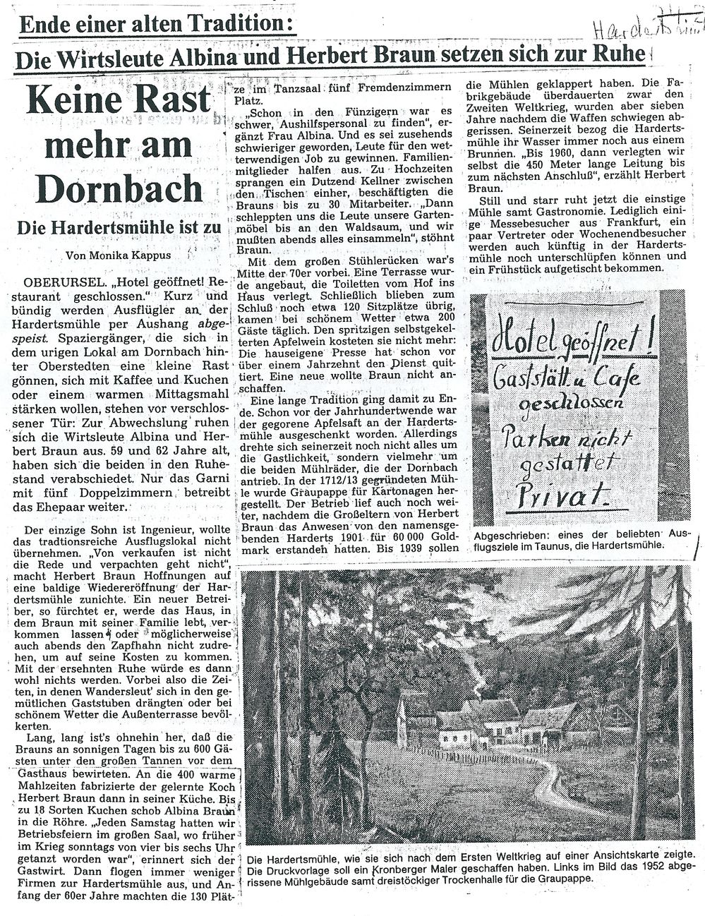 Hardertsmühle - Schließung 1992 |