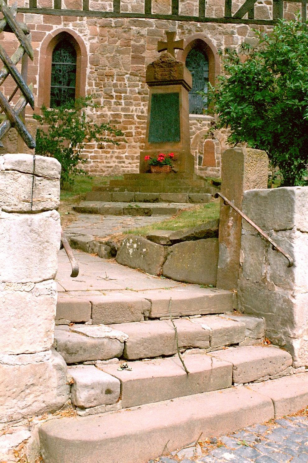 Südseite vermauertes Rundbogenportal. Der schmalere,