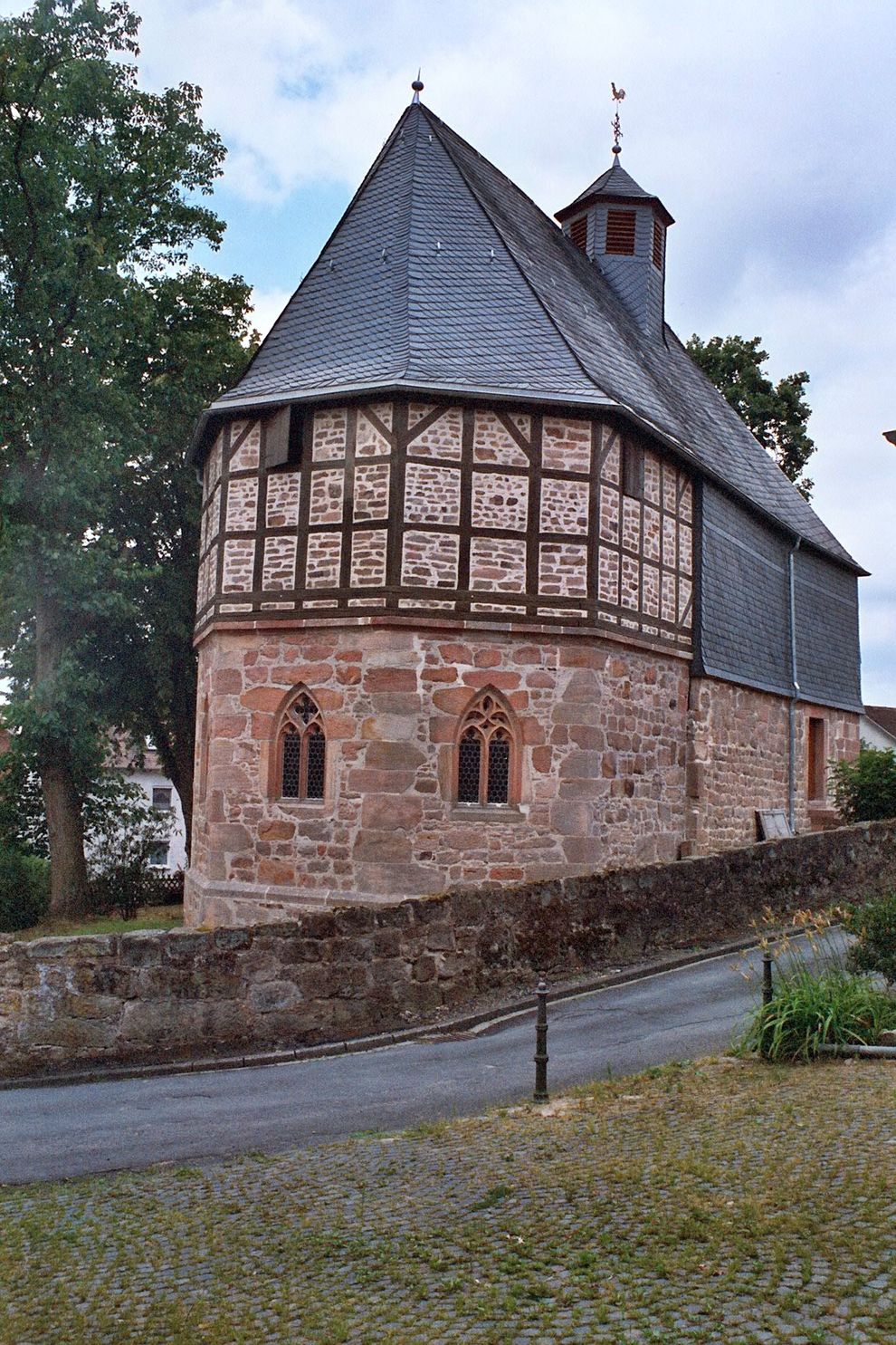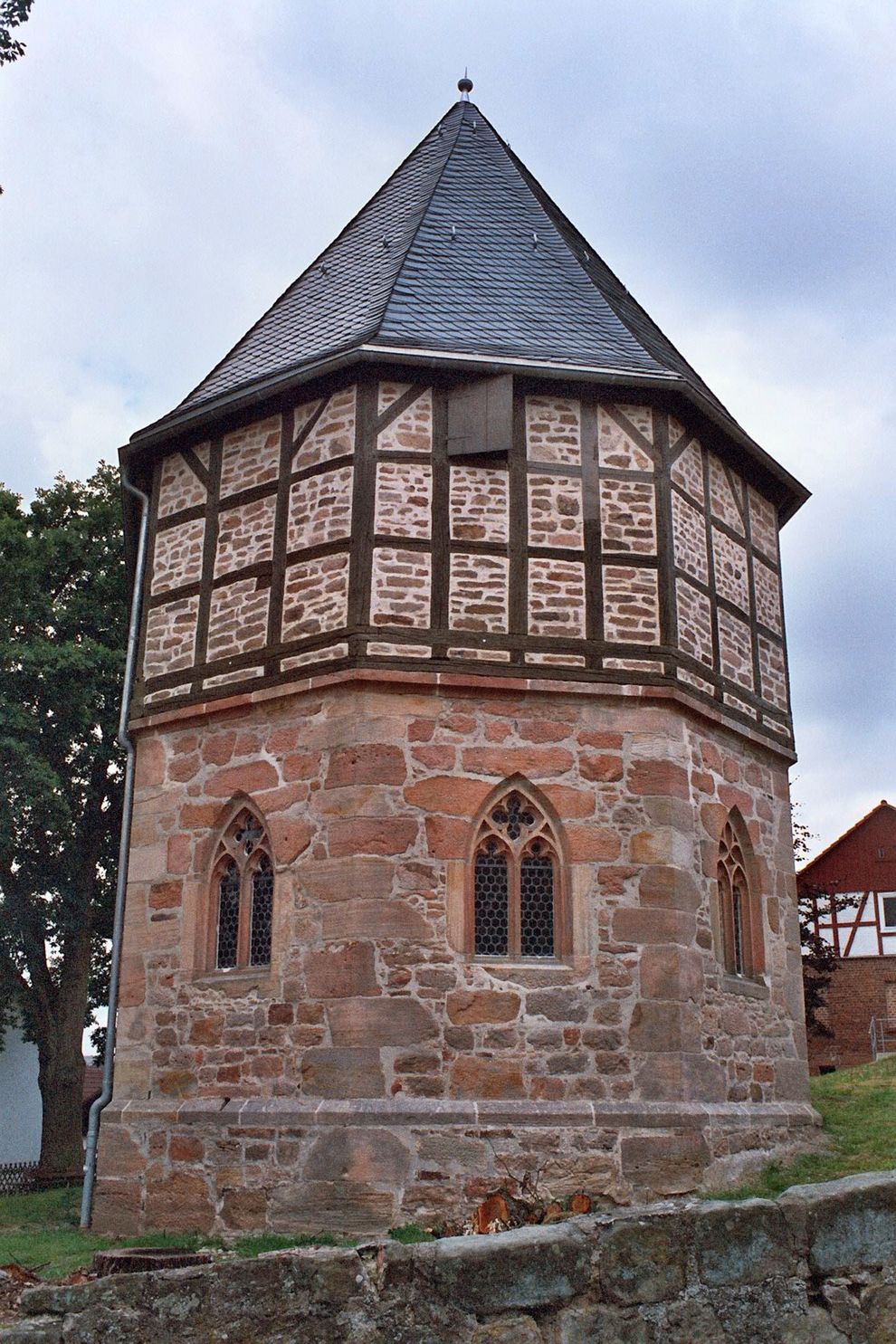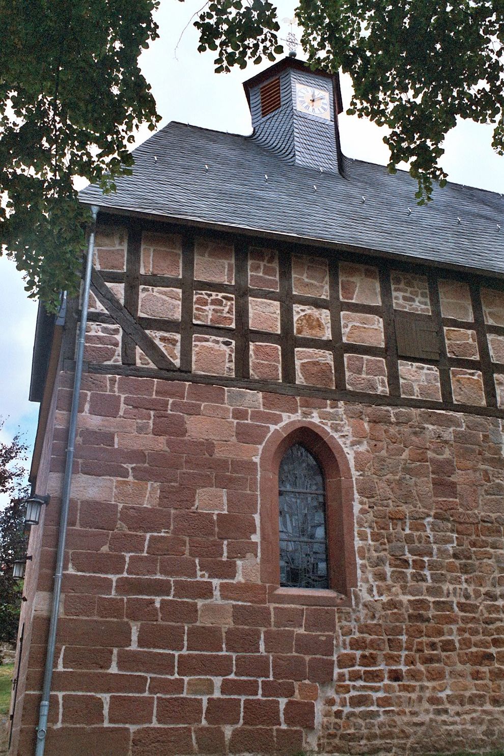 und Schiff ein ehemaliger Fruchtspeicher in Fachwerk, 1683. Dachreiter